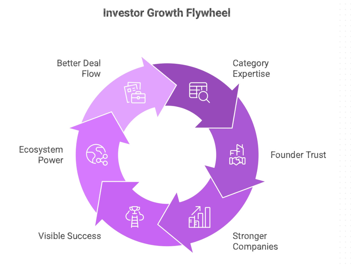 Category Expertise → Founder Trust → Stronger Companies → Visible Success → Ecosystem Power → Better Deal Flow → Category Expertise.
