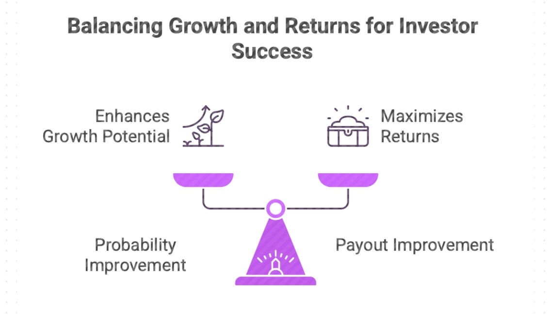 Value Capture has two parts: improving probability (making the company more likely to succeed) and improving payout (structuring the deal so that success translates into returns). Both matter. An investor who helps a company grow but overpaid at entry will watch the value they created accrue to someone else. An investor who got a great deal but adds nothing will watch the company underperform the scenario their model assumed.