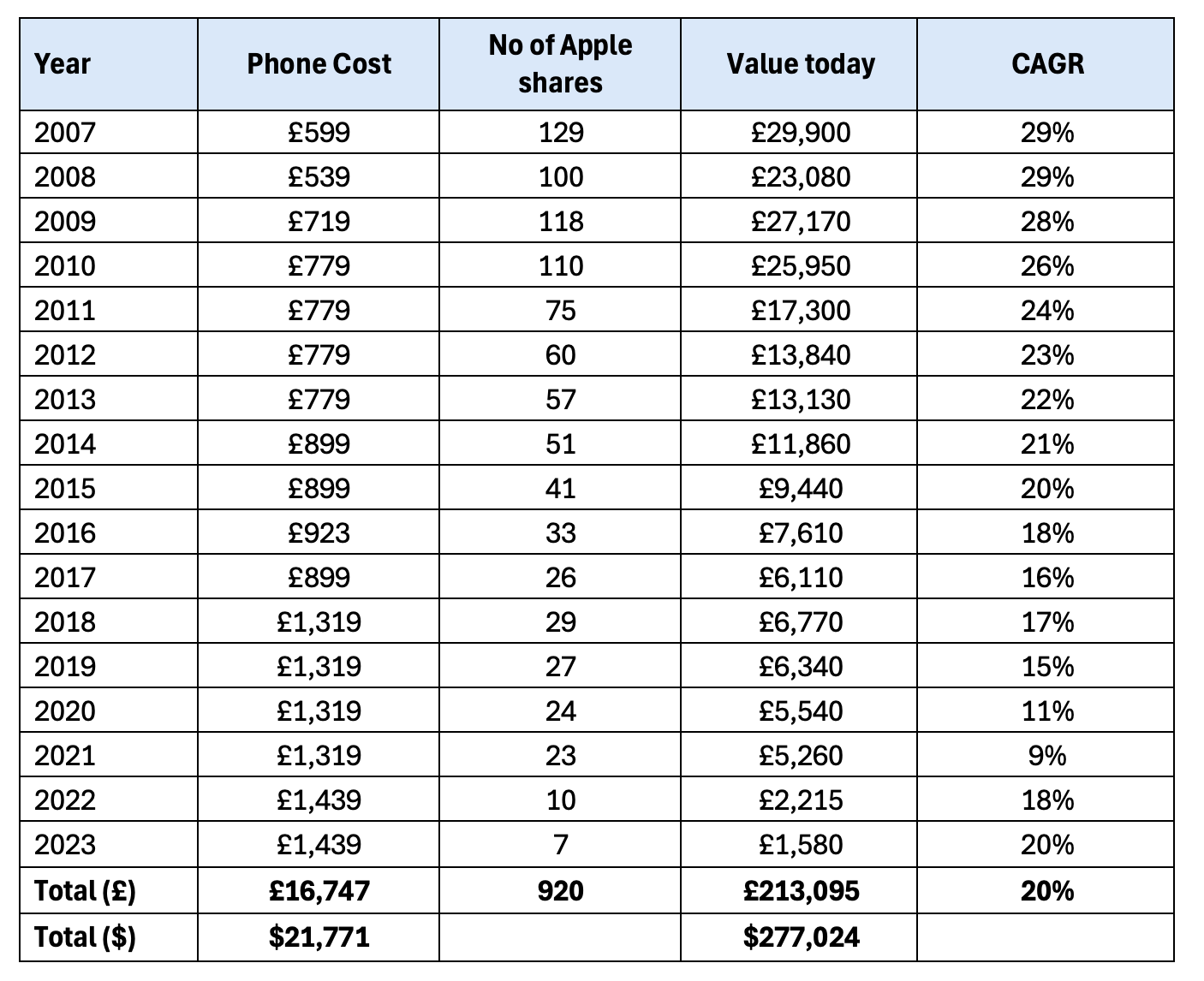 Similarly, my annual Apple fix has cost me a quarter of a million dollars.