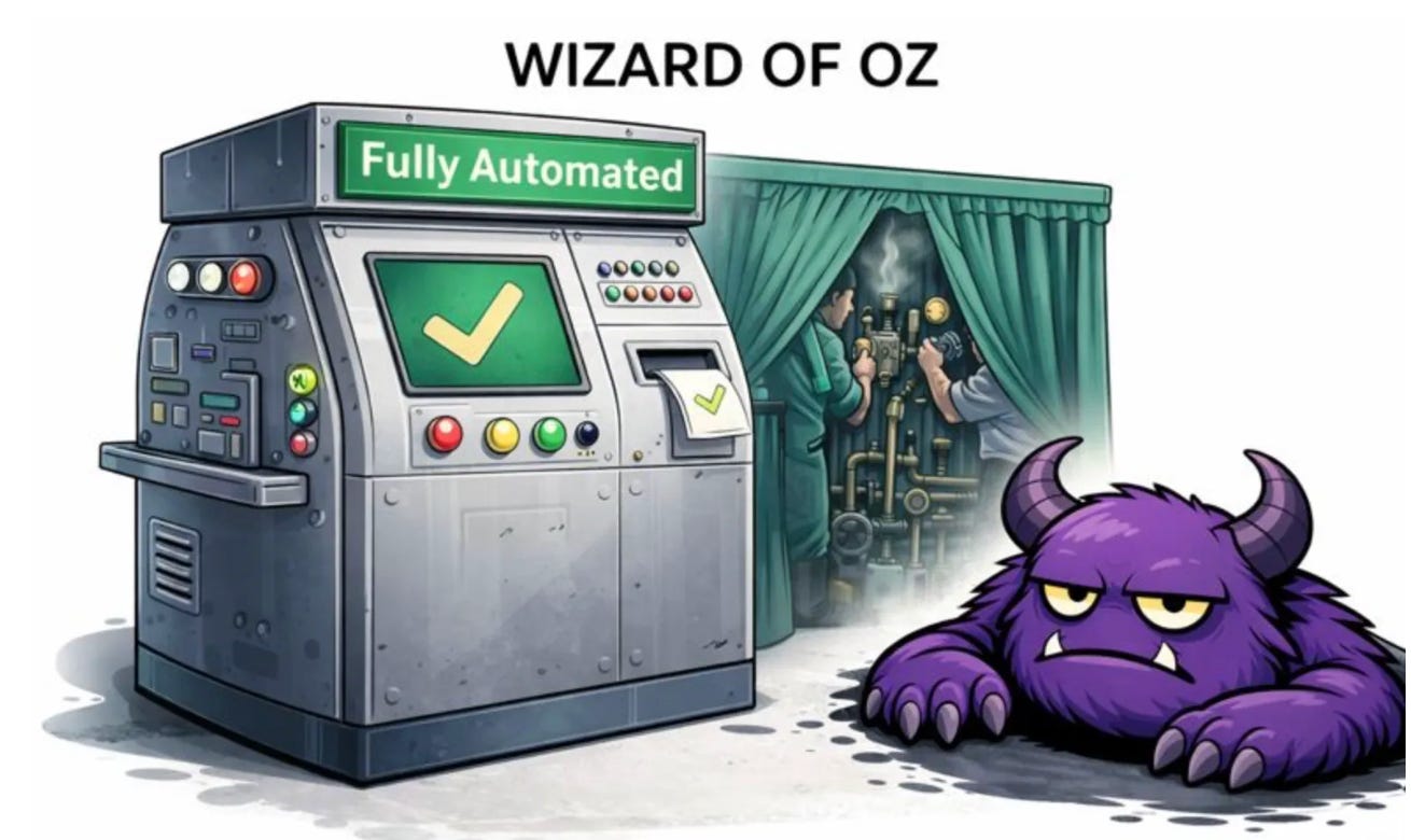 In the early rollout, the stores delivered the “just walk out” experience, but humans assisted and corrected edge cases behind the scenes. Customers behaved as if the system was fully automated. Amazon observed whether people trusted the experience enough to shop normally and return.