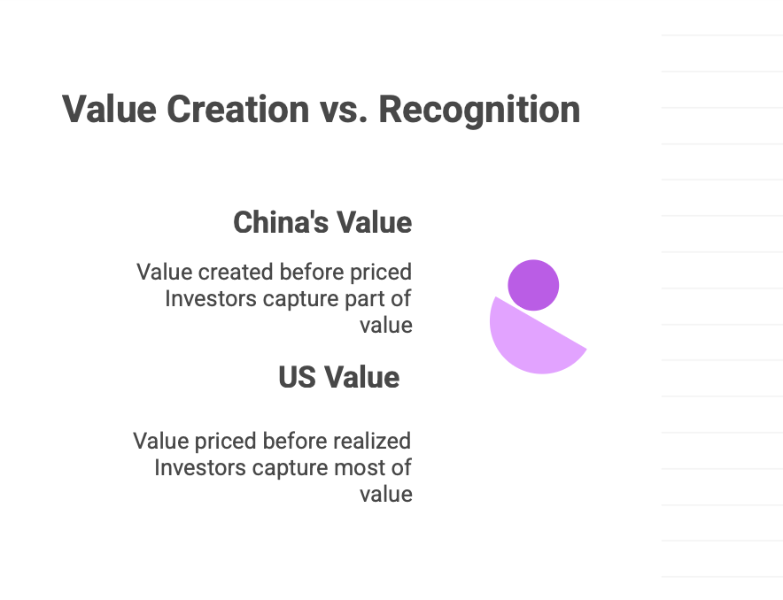 China’s system does what it is designed to do. It compounds scale, networks, and physical systems, and it deliberately reinvests surplus to build capability in industries that matter next. Value shows up first in use: in cheaper transport, more reliable logistics, denser supply chains, and faster learning curves. Financial recognition comes later, if at all, and only once capability is secure.