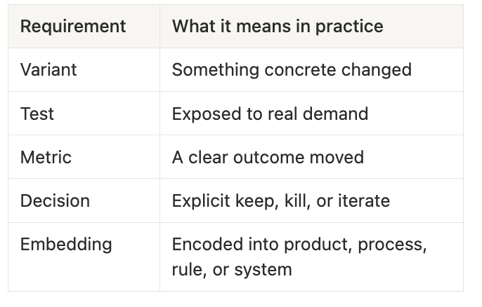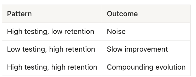 A system that runs many tests but forgets the learning generates activity without progress.