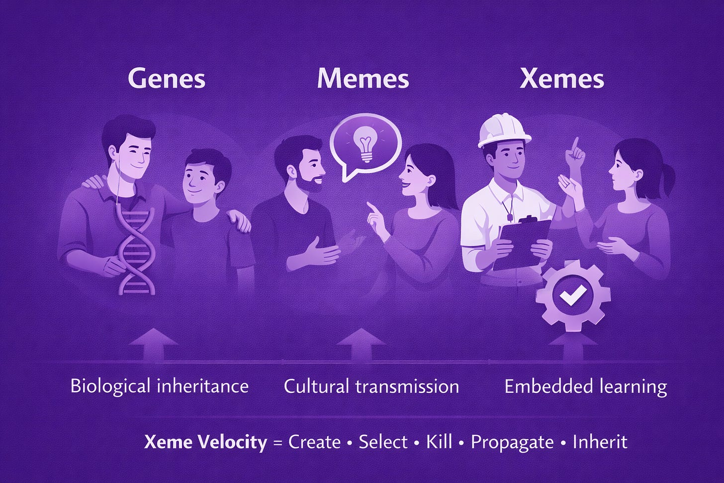 Competitive advantage comes from xeme velocity: how fast a system can create, kill, propagate, and inherit learning.
