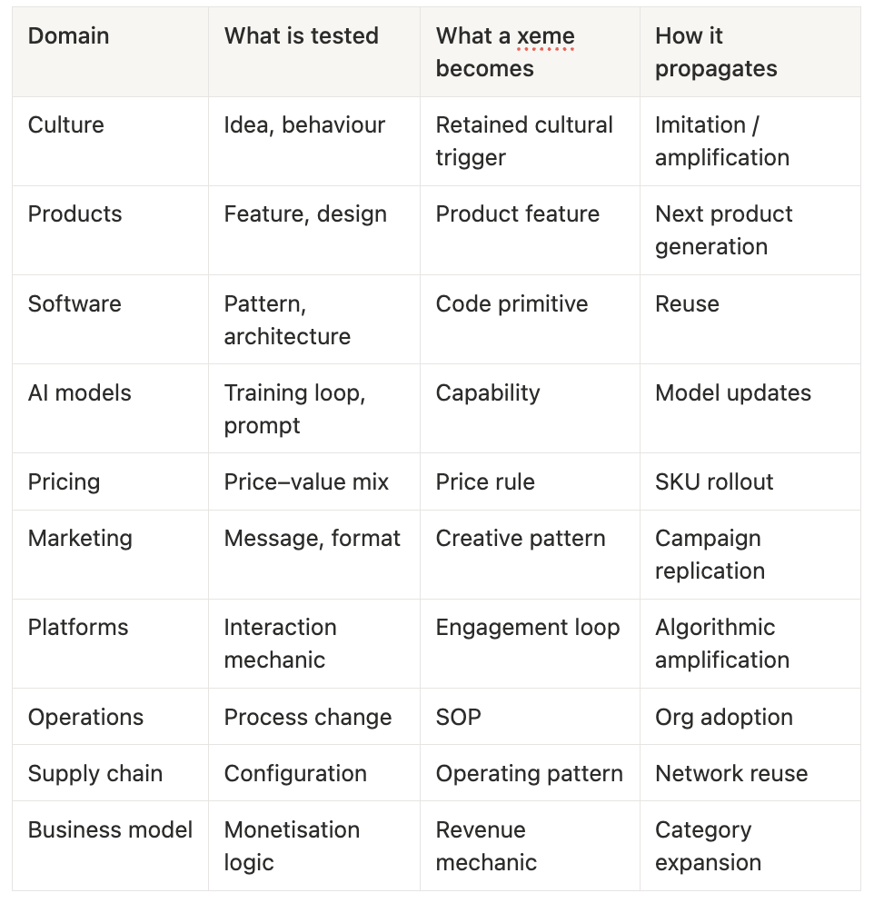As competitive pressure increases and AI lowers the cost of variation, organisations that generate and retain xemes faster will evolve faster. Those built for slower learning loops will fall behind until the gap becomes structural.